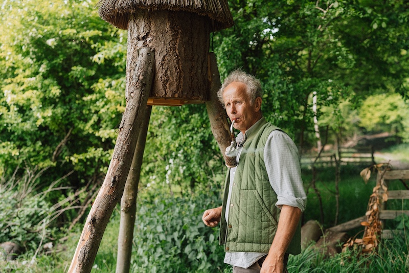 For the last 14 years Matt Somerville has spent the winters creating his log hives before driving around all of England in the summer, erecting them as non-intervention habitats for wild honey bees.