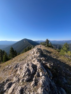 Mt Ellis run with Erin, Ashley, and Luke, and bonus views from the top. A double track most of the way up makes for great side-by-side running and some good conversations. Heads up for the last steep pitch before the top; it is famously feared in our uphill run time trial, and will certainly take you by surprise.